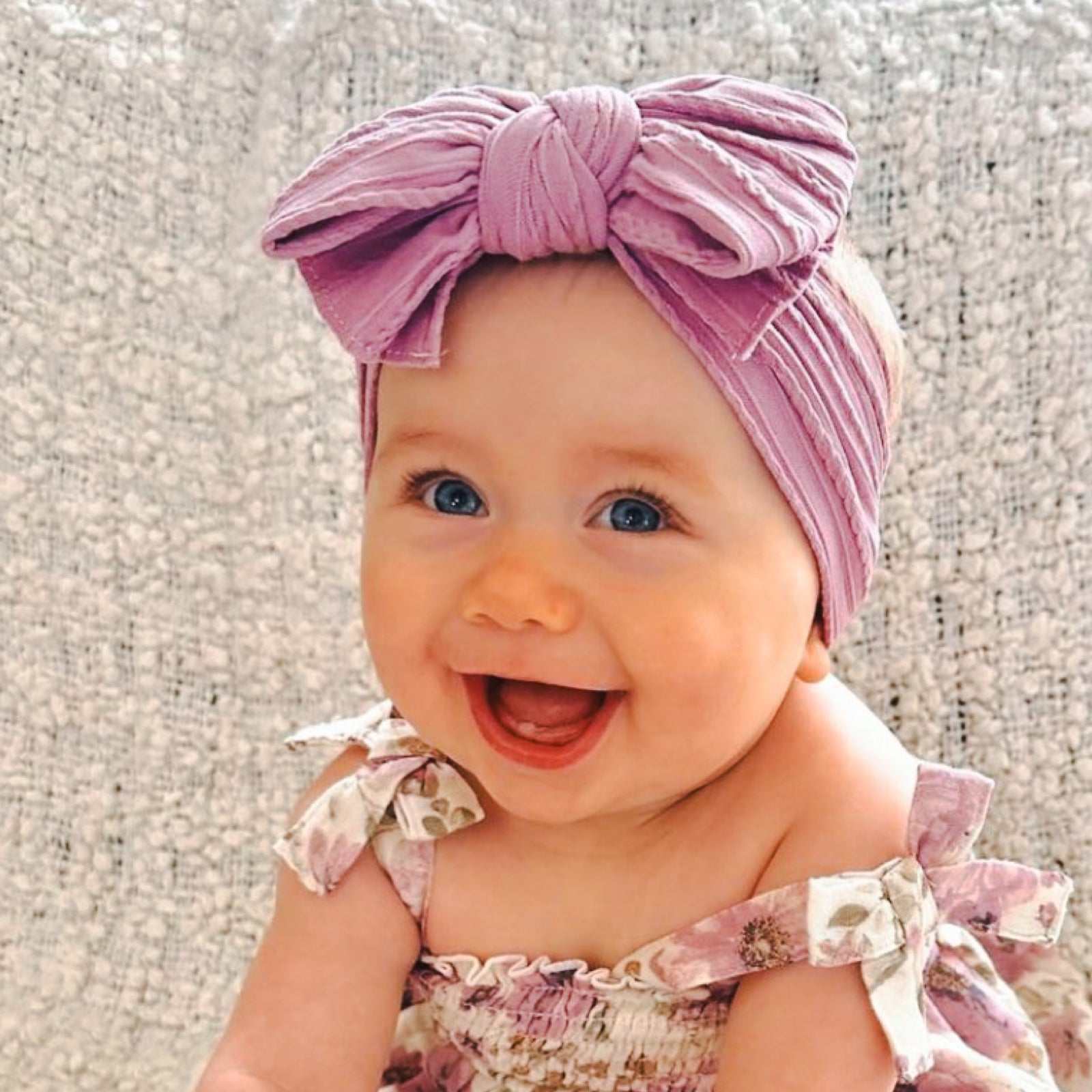 Big Bow Cable Knit Baby Bow Headband | Orchid