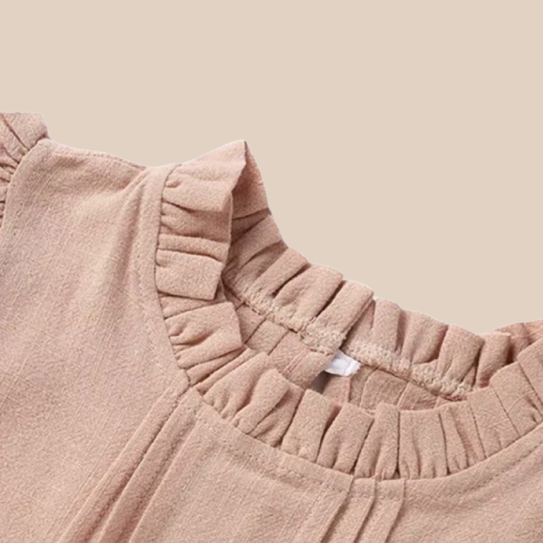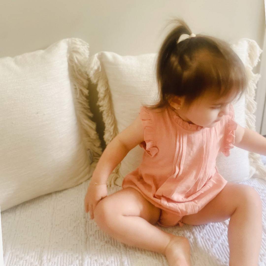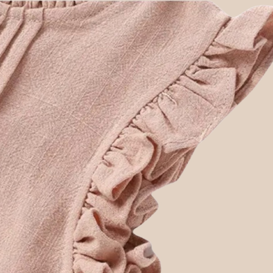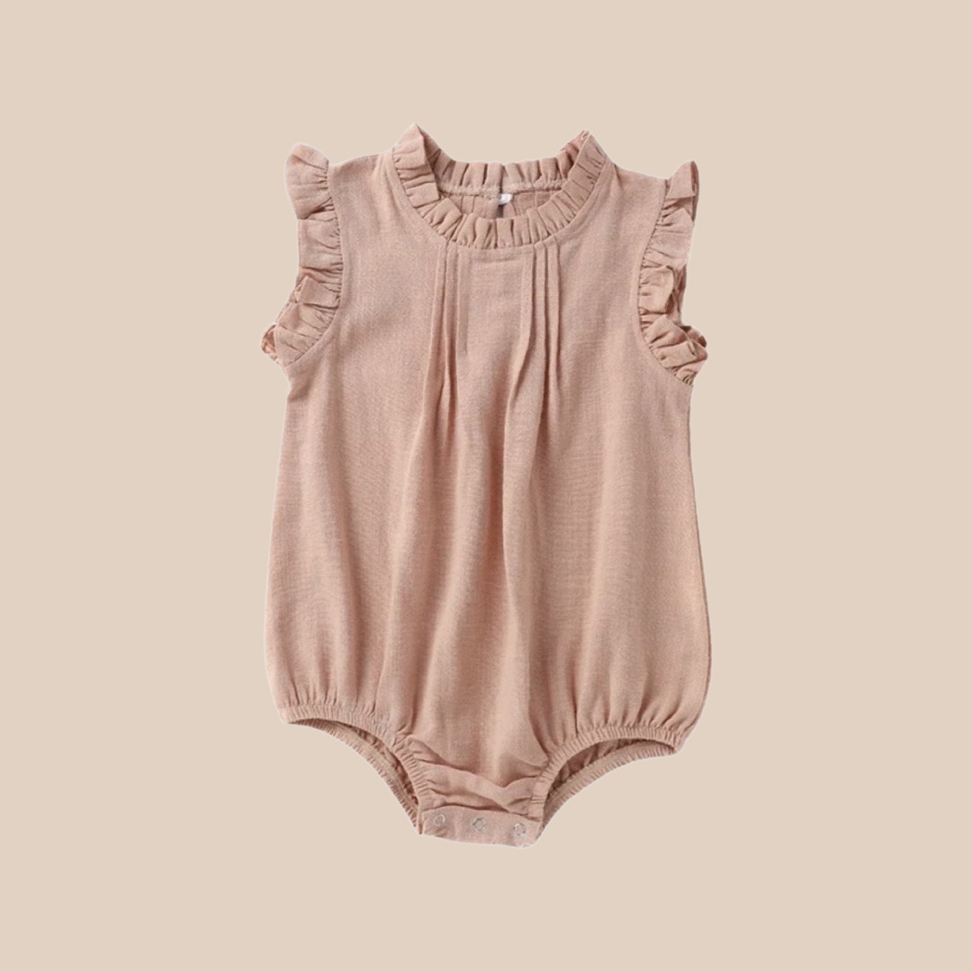This elegant boho linen pink baby romper is perfect for your little fashionista. With is beautiful boho design and delicate frills, this bubble style romper is sure to turn heads. The lightweight linen fabric is comfortable and breathable, making it perfect for all day wear.