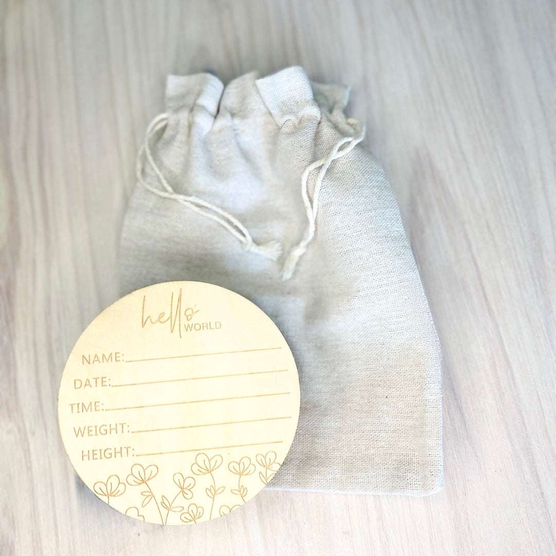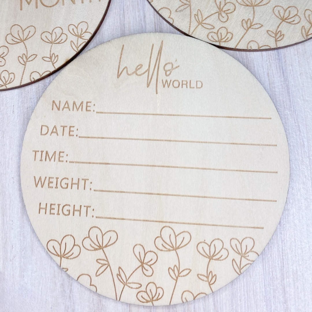 Our Floral Baby Milestone Disc Set is the perfect way to capture and celebrate your baby's precious milestones each month! This set includes a beautiful "Hello World" announcement disc with space to record birth details, as well as discs for every month, marking your baby's journey throughout their first year.