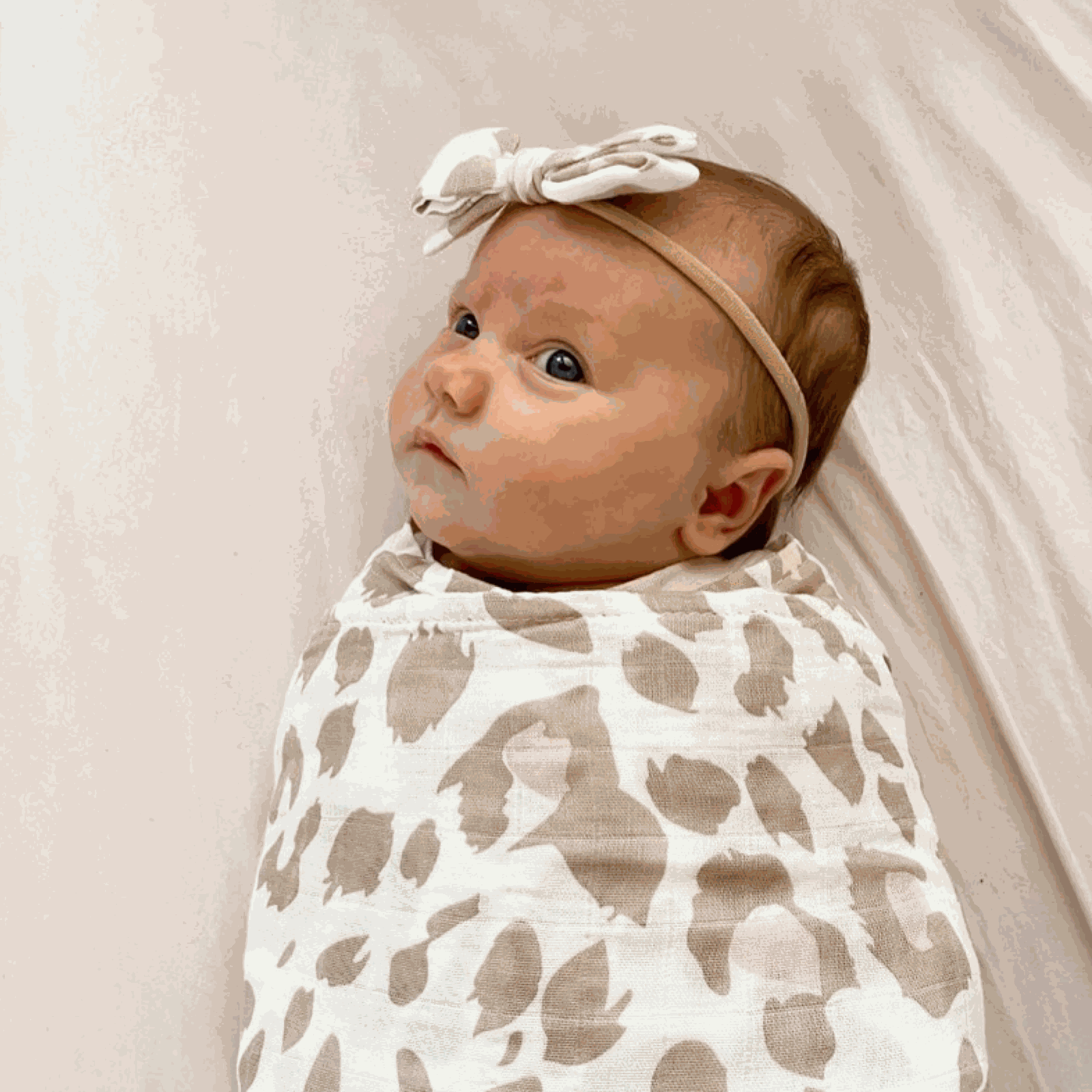 Our Leopard Print Petite Baby Bow matches perfectly with our Leopard Print swaddle. This makes a gorgeous newborn baby announcement photo.