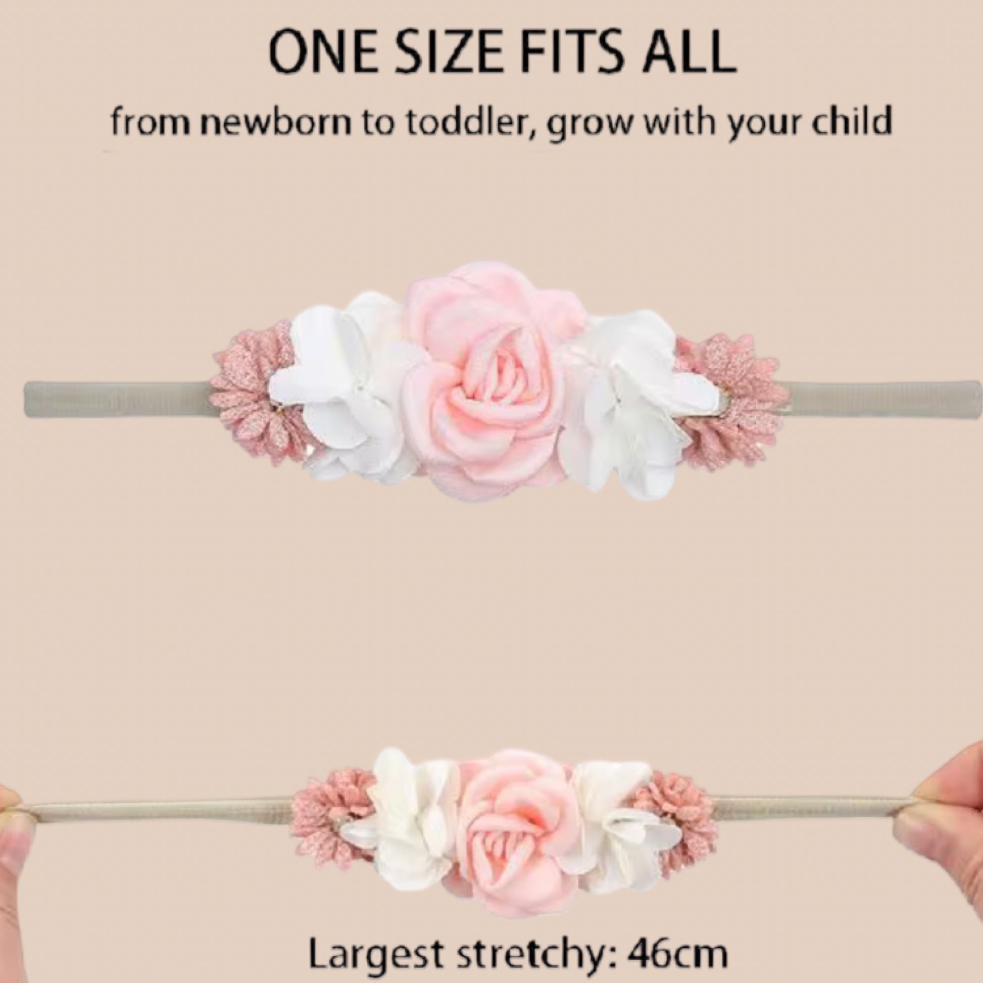 Each bow features a charming floral design and comes in three timeless hues, pink, ivory and tan and cream. They are ideal for any special occasion, from newborn photoshoots to weddings and birthday parties.